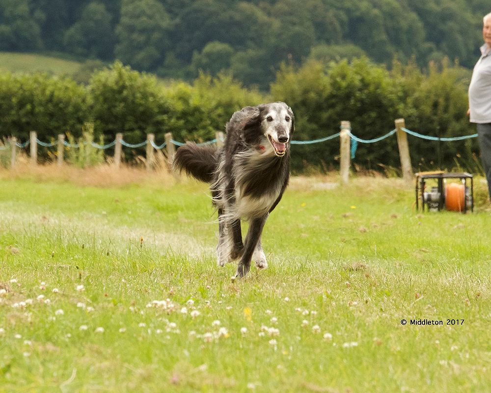 Es hat mich immer fasziniert, wie er in jeder Situation gelassen und cool blieb. Selbst in großem Trubel immer ein kleines Fleckchen fand um sich mit einem scheinbaren Axelzucken nieder zu legen, als wenn ihn das Alles nicht beeindruckte. Auch auf einem großen Windhundrennen, um ihn herum viele bellende Hunde, und den Hasenzug nicht weit entfernt vor Augen, er so gelassen und ruhig blieb, dass wir schon betrübt dachten "der läuft heute nicht". Aber wehe es wurde ernst, dann war er da, zu 100%. Konzentriert und hochmotiviert. Sogar in einem Alter von 7 Jahren noch so schnell, dass er die komplette (extrem starke und junge) Konkurrenz hinter sich lies.